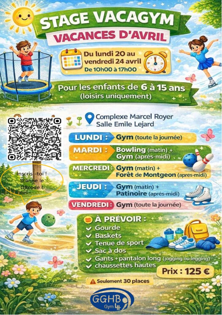 Nous avons le plaisir de vous proposer notre stage Vacagym des vacances de printemps !