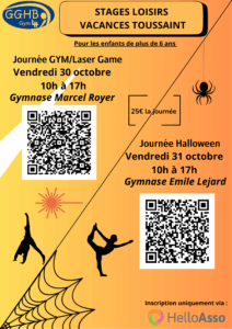 – Le Vendredi 31 Octobre : de 10h à 17h au Gymnase Emile Lejard. Au programme : Journée Halloxeen (défis, gymnastique, tous déguisés)